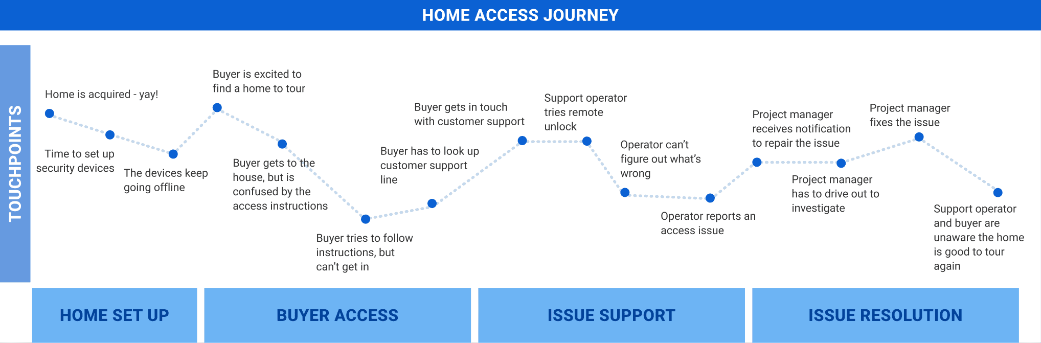 I mapped the entire home access experience to identify opportunities, users, and responsible teams in each stage of the journey.